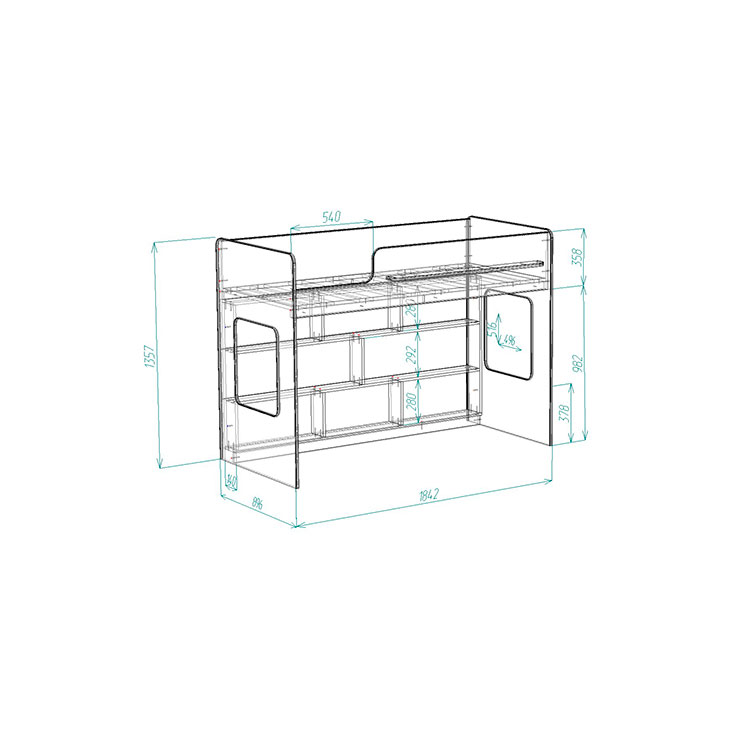 Две удобные белые полки Л-01 над каждой кроватью обеспечат Вашим детям удобное хранение мелочей.