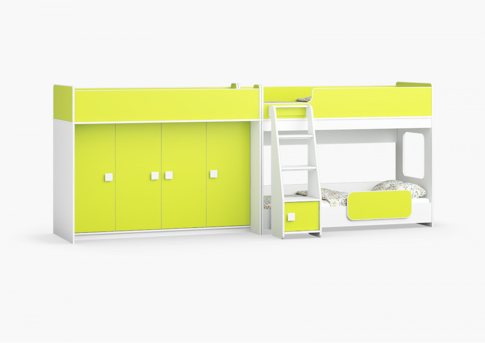 Две кровати, огромный шкаф для хранения вещей – одна лестница. Идеальный вариант для троих!