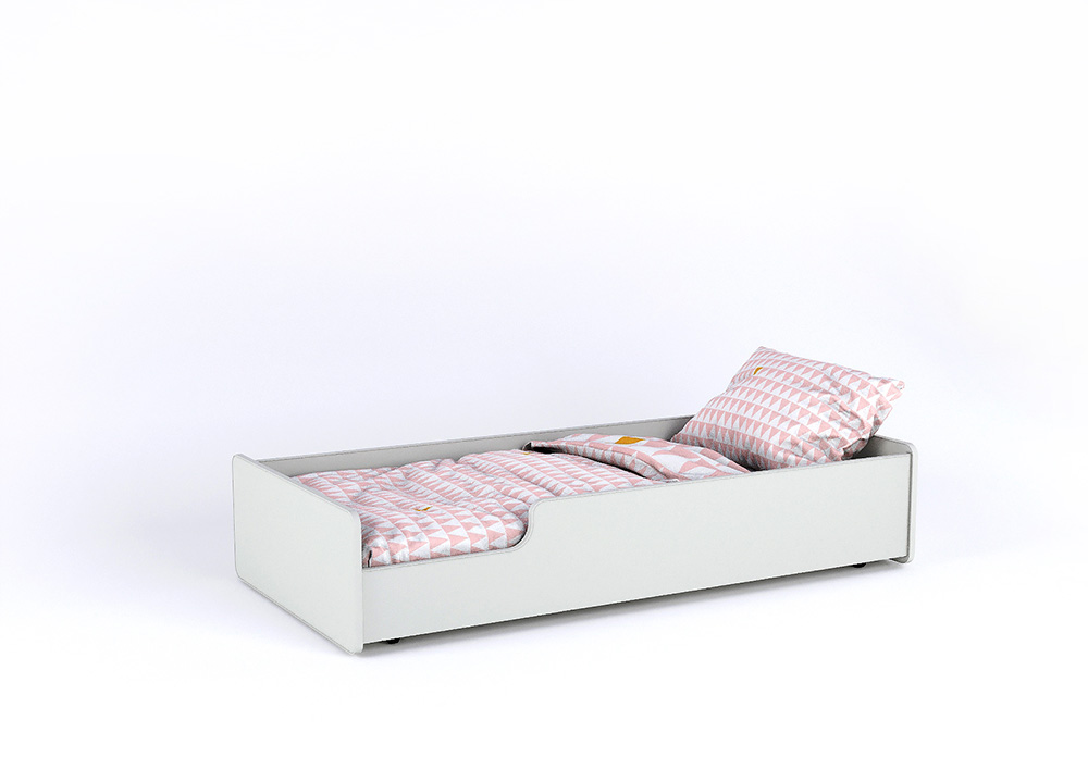 Кровать легко выдвигается и задвигается с помощью роликовых колёс.